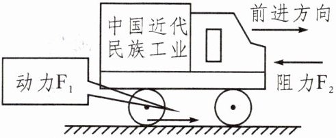 11. 如果用力学结构图来展示中国近代民族工业的发展历程,如图所示,$ F_1 $是中国近代民族工业发展的动力,$ F_2 $是其发展的阻力。$ F_2 $的阻力主要来自封建主义、帝国主义等的剥削和压迫,$ F_1 $的动力可能来自(
