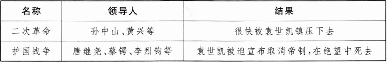 2. (2025·来宾市期末改编)下表中的二次革命和护国战争反映的共同主题是(