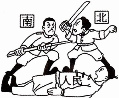 7. (2024·柳州市期末改编)下面是1918年沈伯尘针对时弊创作的漫画,漫画中“南”“北”分别代表南方和北方的军阀。该作品意在(