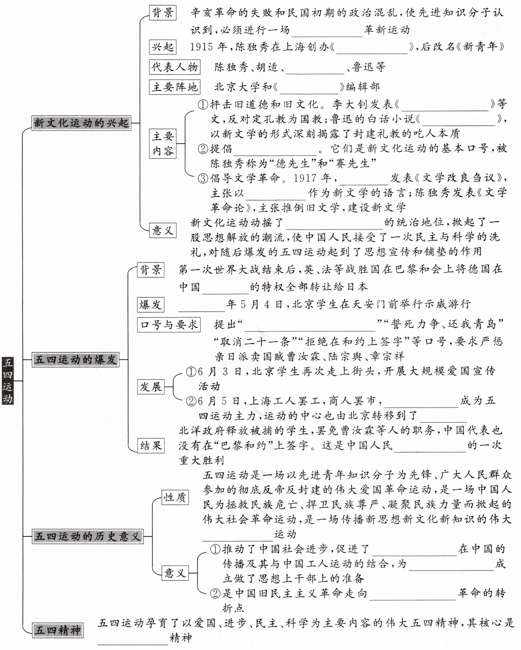 思想文化 青年杂志 李大钊 新青年 孔子与宪法 狂人日记 民主与科学 胡适 白话文 封建道德礼教 山东 1919 外争主权、内除国贼 工人阶级 上海 反帝斗争 思想启蒙 马克思主义 中国共产党 新民主主义 爱国主义