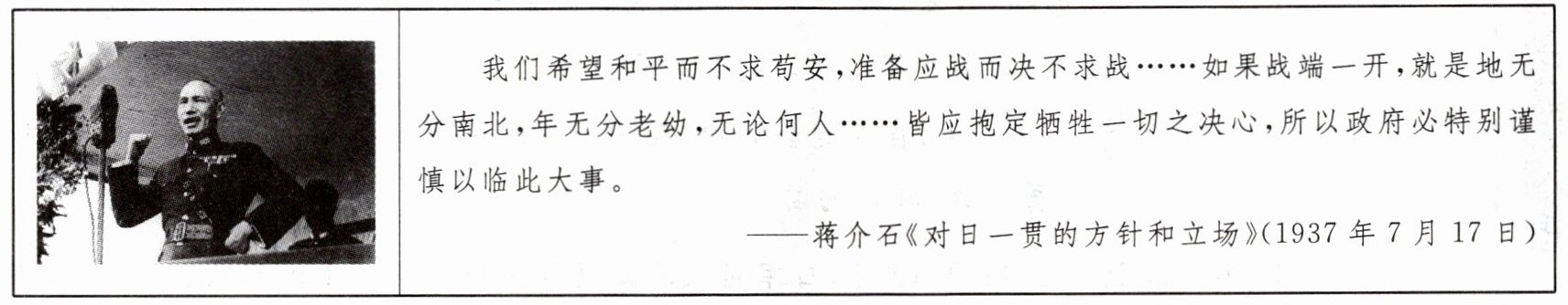 (2)态度:提出全民族抗日,准备应战。(1 分)重大变化:由对立走向合作。(1 分)