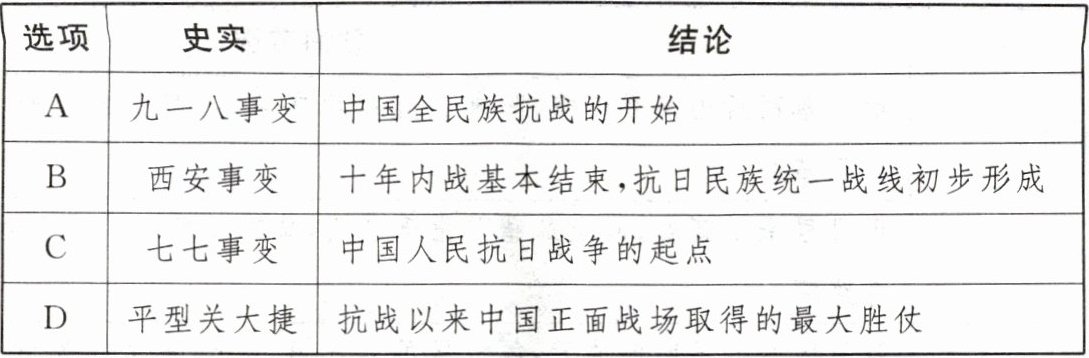 3. (2024·广元中考改编)抗日战争凝聚了全民族的力量,经过14年艰苦卓绝的抗战,中国人民终于取得了抗日战争的伟大胜利。下列抗战史实与结论之间逻辑关系对应正确的是(