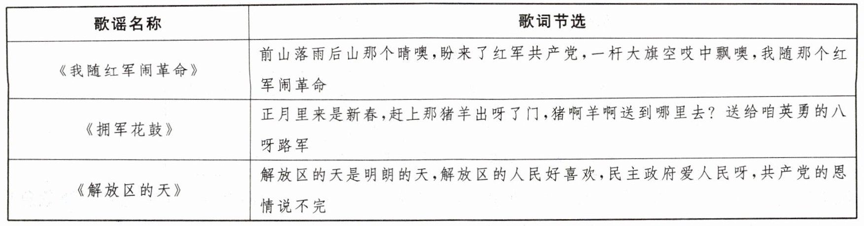 9. (2025·广西中考)音乐记录了时代的声音。以下是新民主主义革命时期流行于各地区的歌谣,这些歌谣集中反映了(