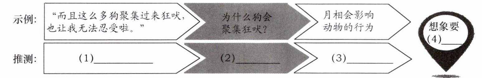 7.本文引发了同学们的好奇心。借助下面的知识卡片,参照示例,完成一条关于月亮的想象推测,并关联题组完成第(4)空。