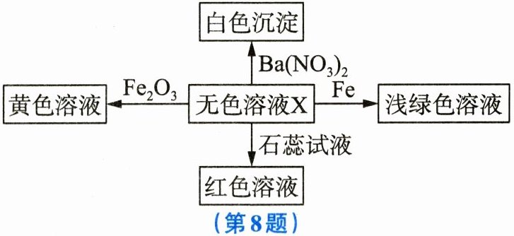 8. 科学无处不在,如图所示为物质间发生反应时的颜色变化,其中X是(
