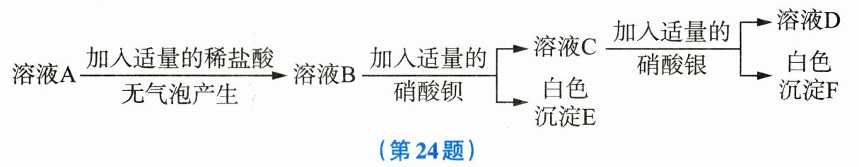 24. 某$KNO_3$化肥中可能混入了$NH_4Cl、$$(NH_4)_2SO_4、$$K_2CO_3$三种物质中的一种或几种,同学们取适量该化肥配成溶液A,开展了如图所示的探究活动。
