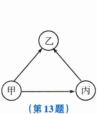 13. 如图所示,“$\to$”表示一种金属能把另一种金属从其盐溶液中置换出来,则甲、乙、丙三种金属的活泼性由强到弱的顺序是 (