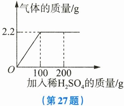 27. (6分) 现有一包固体粉末,是$Na_{2}CO_{3}和Na_{2}SO_{4}$的混合物22.2g,向其中加入足量的稀$H_{2}SO_{4}$,产生气体的质量和加入稀$H_{2}SO_{4}$质量的关系如图所示。