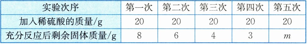 (3)设20g稀硫酸中溶质的质量为x。CuO+H₂SO₄===CuSO₄+H₂O80 982g x$\frac{80}{98}=\frac{2g}{x}$,解得x=2.45g。加入稀硫酸的溶质质量分数为$\frac{2.45g}{20g}×100\%=12.25\%$。