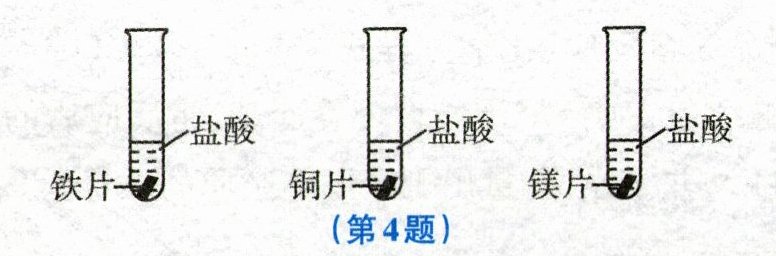4. 如图所示,探究铁、铜、镁的金属活动性时,下列现象、分析或结论中,正确的是(