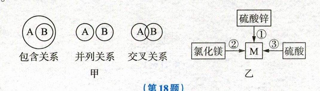 关系。(2)转化关系:图乙表示几种化合物能通过一步反应转化为含镁化合物M,则物质M属于