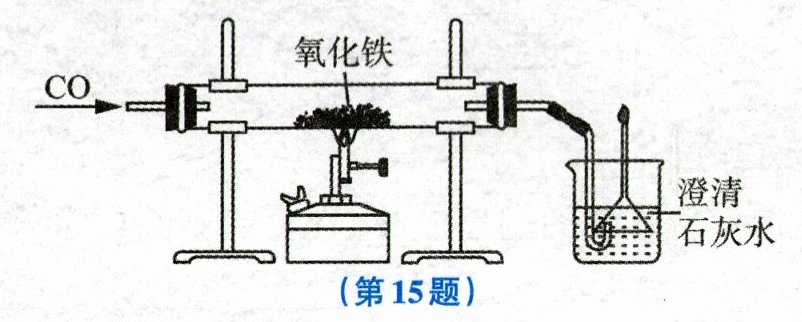 15. 如图所示,用一氧化碳还原氧化铁的实验中,Fe_2O_3转化为铁的具体过程是Fe_2O_3 $\xrightarrow{400~500℃}$ Fe_3O_4 $\xrightarrow{600~680℃}$ FeO $\xrightarrow{700~800℃}$ Fe,已知铁的氧化物除Fe_2O_3外,其余均为黑色。下列说法中,正确的是(