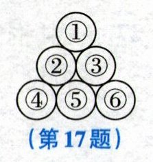 17. 如图所示,其中①、②、③、④、⑤、⑥分别是铁、氯化钙溶液、硝酸银溶液、稀盐酸、氢氧化钙溶液、碳酸钠溶液中的一种。图中相连的两个圆表示相应物质能发生反应,已知②和①、②和⑤反应时都有气泡出现。