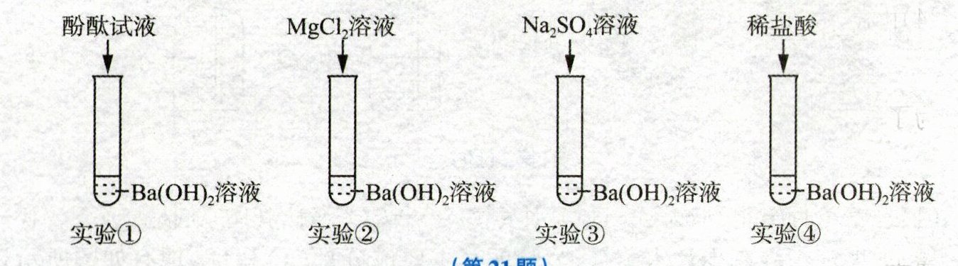 21. 小刚为了验证$Ba(OH)_2$的化学性质,做了如图所示的四个实验。