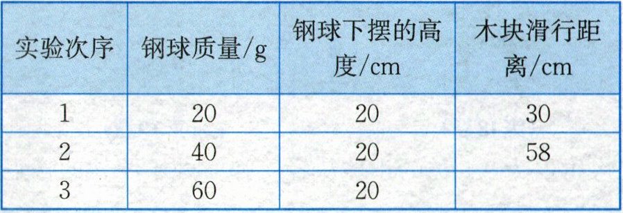 的关系。(3)在第3次实验中,木块被撞击后滑出木板,需要重做第3次实验,甲同学建议换用同样较长的木板,乙同学建议换一个较大的木块,丙同学建议降低钢球下摆的高度。你认为应当采用