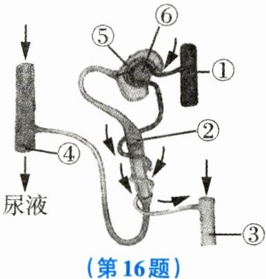 16. 如图所示为人体肾单位结构模式。请据图回答下列问题:
