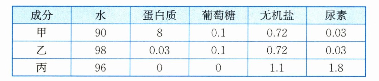 13. 取某健康人的肾脏中不同部位的液体,进行分析测量,得到如下表所示的数据(单位:g/100mL)。据表可以推测乙是(