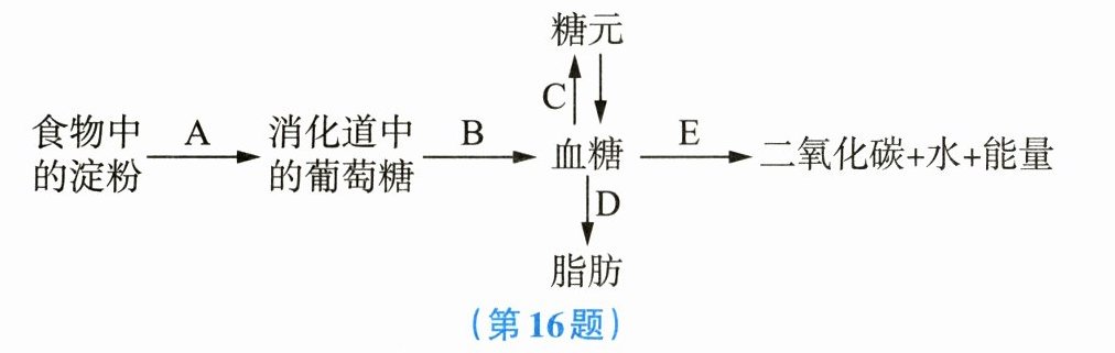 16. 如图所示为人体内糖代谢的过程,请据图回答问题。