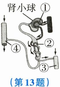 13. 如图所示为人体尿液的形成过程示意图,下列有关①~④液体中成分的说法,正确的是(
