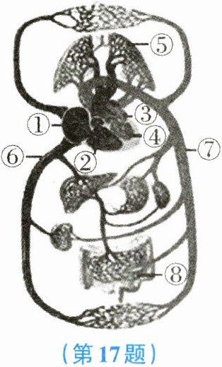 17. 如图所示为人体血液循环模式图,请据图回答下列问题: