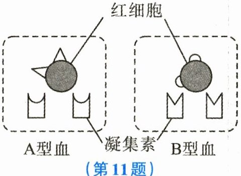 11. 模型是学习科学的主要方法。为了更好地学习并理解人类的ABO血型系统,某同学绘制了A型血和B型血的模型图(如图所示)。据此推测,O型血的模型图是(