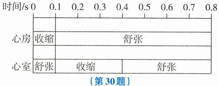30. (8分)如图所示为某人心脏每搏动一次时,心房、心室收缩和舒张所需时间的示意图,请回答下列问题: