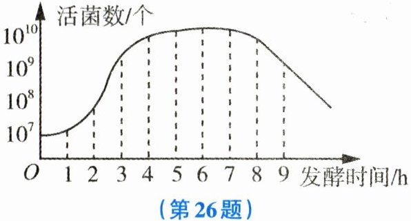 26. 小敏用酸奶机自制酸奶。他将酸奶机内的容器放在沸水中煮5min,取出冷却后,将买来的盒装鲜奶和乳酸菌粉(里面含有大量活的A乳酸杆菌)倒入其中,充分搅拌后,放入酸奶机中,设定加热温度(38℃)和时间,让其进行发酵。请回答下列问题: