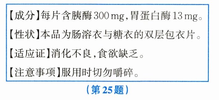 25. 某药品部分说明书如图所示,请阅读后回答下列问题:
