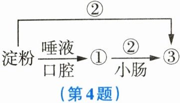 4. 淀粉在人体内的消化过程如图所示,据图判断,下列叙述中,错误的是(