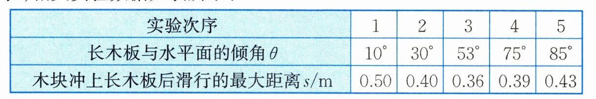 (2)其他条件相同时,随着倾角$\theta$的增大,木块冲上长木板后滑行的最大距离s先减小后增大