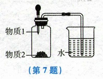 7. 现有①铜和稀盐酸、②氢氧化钠和水、③硝酸铵和水、④镁和稀硫酸、⑤锌和稀盐酸五组物质。将各组中的两种物质在如图所示的气密性良好的装置中相互混合,有气泡从水中逸出的是(