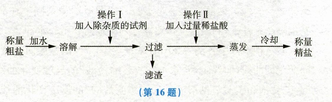 16. 利用粗盐样品(含$ CaCl_2、$$MgCl_2 $和泥沙)制取纯净的 NaCl 的流程如图所示,下列说法中,不正确的是(