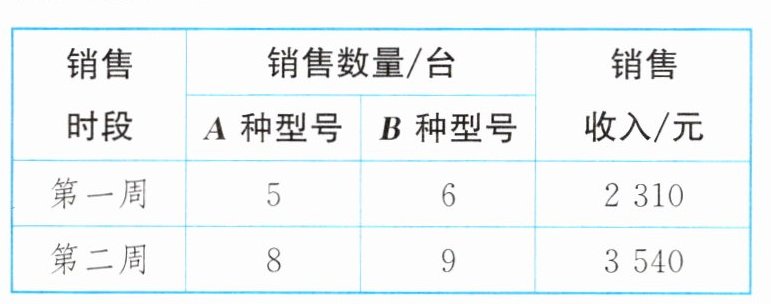 11. (新考向·代数推理)某电器商场销售进价分别为120元/台和190元/台的$A$,$B$两种型号的电风扇,近两周的销售情况如下表(进价、售价均保持不变,利润= 销售收入-进货成本):
