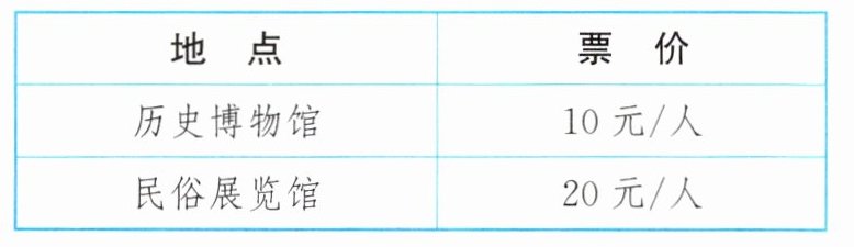 13. (新情境·日常生活)(2025·吉首开学)本学期学校开展以“感受中华传统美德”为主题的研学活动,组织$150$名学生参观历史博物馆和民俗展览馆,每一名学生只能参加其中一项活动,共支付票款$2700$元,票价信息如下: