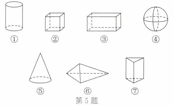 2. 有下列几何图形:① 三角形;② 长方形;③ 正方体;④ 圆;⑤ 四棱锥;⑥ 圆柱.其中,属于平面图形的是(