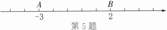 5. 如图,在数轴上有 A,B 两点,点 A 在点 B 的左侧.已知点 A 对应的数为$-3$,点 B 对应的数为 2.