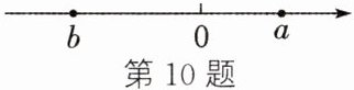 10. 如图,有理数$a$对应的点在数轴的正半轴上,有理数$b$对应的点在数轴的负半轴上,且$|b|>|a|$,则下列结论不正确的是 (