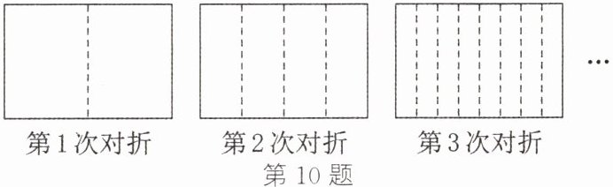 10. 如图,将一张长方形纸对折 1 次,可以得到 1 条折痕,继续对折,对折时每次折痕与上次的折痕保持平行,连续对折 3 次后,可以得到 7 条折痕……以此类推,对折 2026 次,可以得到折痕的条数为(