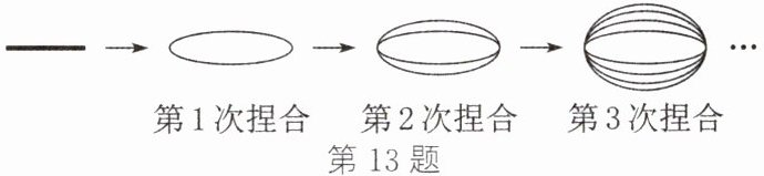 13. (新情境·日常生活)如图,拉面馆的师傅用一根很粗的面条,把两头捏合在一起拉伸,再捏合,再拉伸,反复几次,就把这根很粗的面条拉成了许多细的面条.照这样,第 6 次捏合后可拉出几根面条?