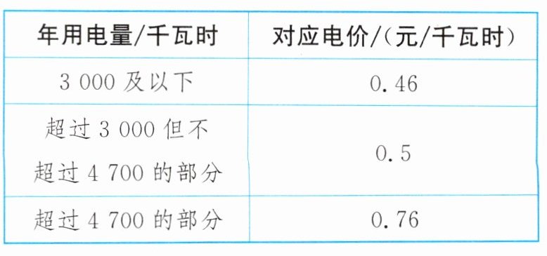 8. (2024·贵阳云岩期末)某市电费根据年用电量实行阶梯式收费,收费标准如下表.