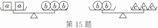 15. (新考向·代数推理)$ a $,$ b $,$ c $ 三种物体之间的质量关系如图所示。