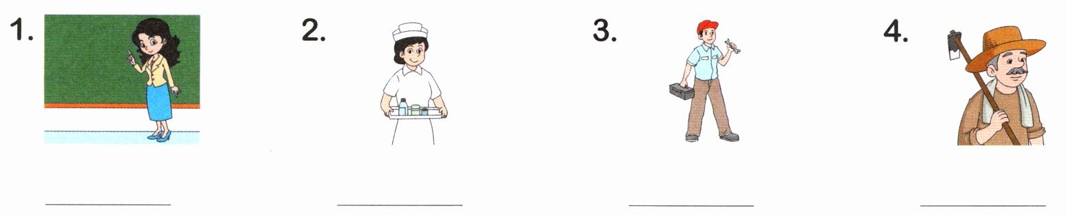 1. father's job 2. make nice food 3. run very fast 4. at a restaurant 5. on a farm 6. at a hospital 7. help sick people 8. put out