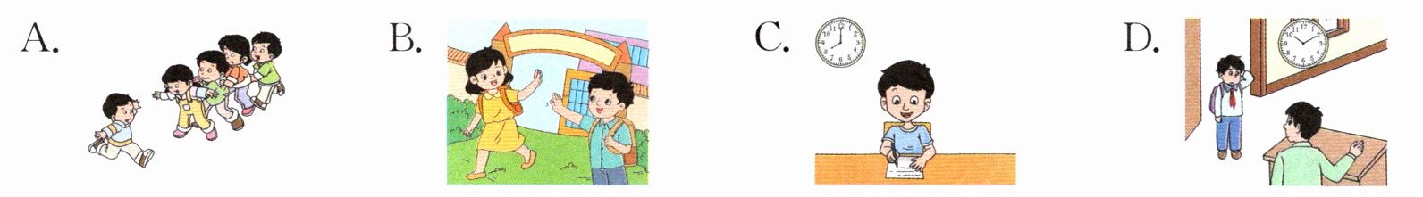 二、Look, read and choose. 给下列句子或对话选择对应的图片。