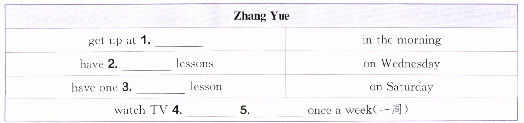 lessons on Wednesday. (上午3节+下午2节)3. Zhang Yue has a