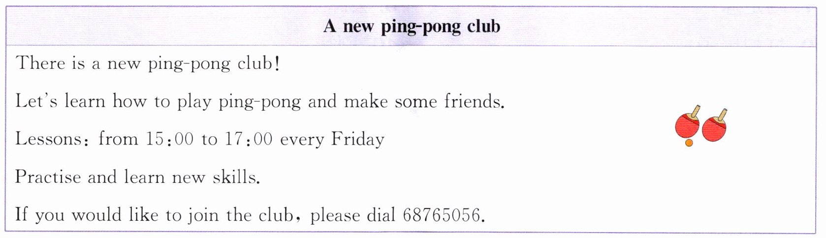 三、[新素材]Read and choose. 阅读表格,选择正确的答案。