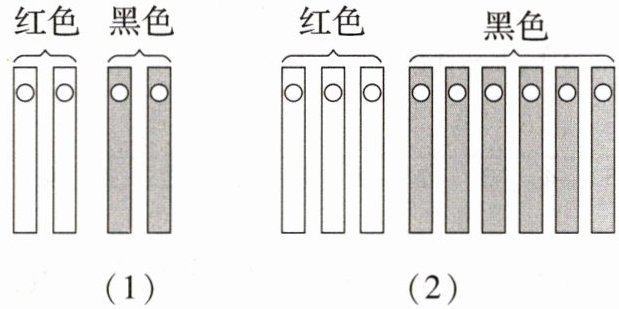 3. 中国人最先使用负数,魏晋时期的数学家刘徽在其著作《九章算术注》中,用不同颜色的算筹(小棍形状的记数工具)分别表示正数和负数(红色为正,黑色为负).如图(1)所示的是 $( + 2) + (-2)$,根据这种表示法,可推算出图(2)所表示的算式是 (