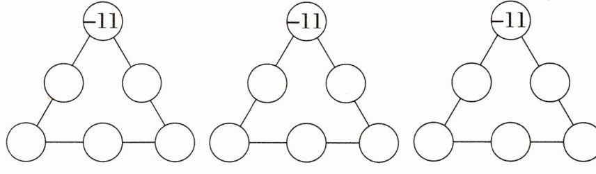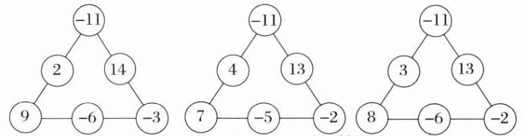 19. 在如图所示的圆圈内填上不同的整数,使得每条线上的 $3$ 个数之和为 $0$,写出三种不同的答案.