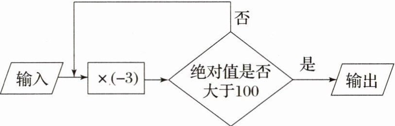 162[提示:若输入的数是-6,则$(-6)×(-3)=18,|18|$$<100$,则$18×(-3)=-54,|-54|<100,(-54)×$$(-3)=162,|162|>100$,所以输出162.]