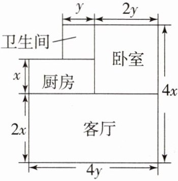 C[提示:由题意得卧室面积为$2y(4x-2x)=4xy$,客厅面积为$2x\cdot 4y=8xy$,其和为$4xy+8xy=12xy$,则他至少需要买$12xycm^{2}$的木地板.]