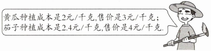16. (教材P124练习T4变式)学生在素质教育基地进行社会实践活动,帮助农民伯伯采摘了黄瓜和茄子共80千克,了解到这些蔬菜的种植成本共180元,还了解到如下信息: